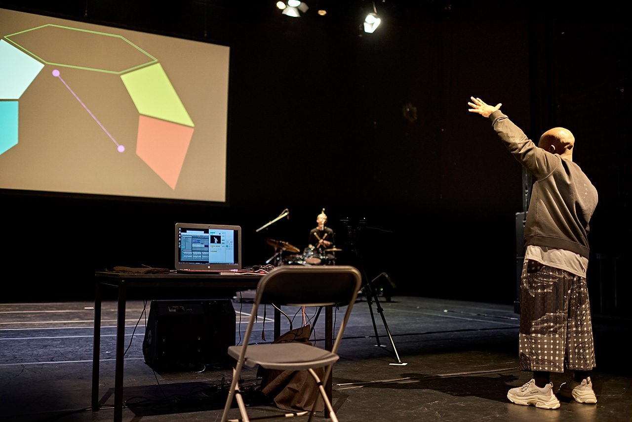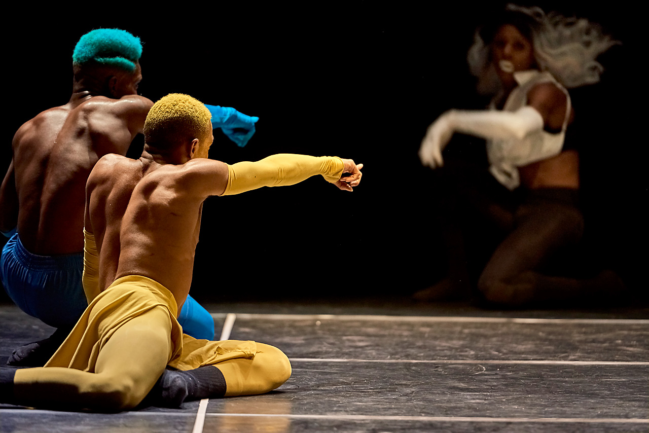 Par ailleurs, si la danse relève du “spectacle vivant”, le dispositif assume sa plasticité avec les nouvelles technologies d’information et de communication. Rashaad nous interpelle sur la façon dont-elle est médiatisée. Aujourd’hui, il n’y a pas un ball de vogue qui ne soit capté en stream, et commenté en live sur un compte Facebook. C’est également en image que FIVE décompose le beat, projeté sur une scène, qui nous fait nous interroger sur le rapport de la musique et de la danse, des couleurs et des visuels.