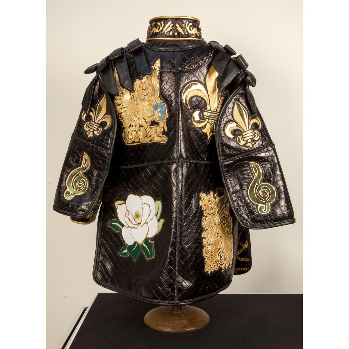 Des mouvements de ballets intégrés à la performance de vogue et du chanteur classique dans FIVE aux blasons animés et à l’or royal qui vient ornementer chacun de ses travaux visuels, Rashaad visibilise des multiplicités d’espaces comme autant de lieux d’appropriation des symboles dominants par des personnes racisées. D’une actualisation queer de l’exubérance des salons du roi Soleil ou d’une certaine profusion baroque, on navigue ici au moyens de codes arrachés à une culture muséale : ce n’est pas pour rien que Rashaad termine sa parade en souverain au musée des beaux arts de la Nouvelle Orléans. Les lieux seront investis par son brass band, ses vogueurs et son MC qui couronneront le souverain en total look cuir comme un roi de l’ancien monde.