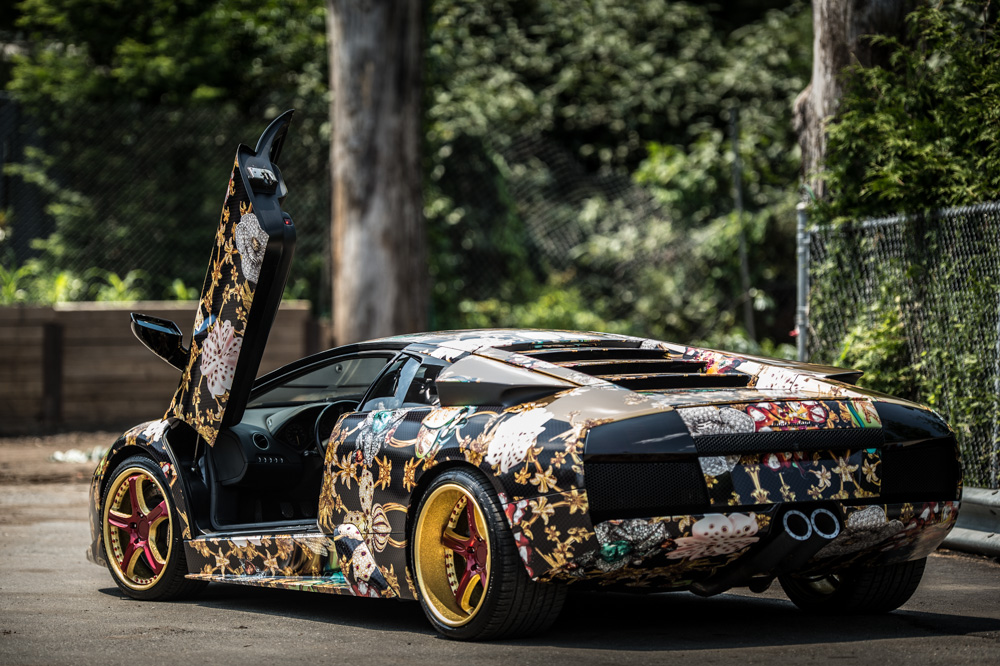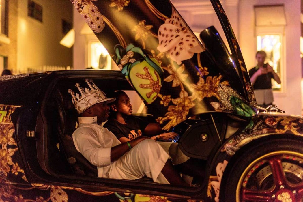 Si le King of Arms, une procession de masse inspirée de la Nouvelle Orléans, occupe l’espace public avec des corps et des véhicules, musique et images sont également mises en jeu.iii Le cœur de la parade c’est cette fanfare qui est recrutée sur place, et le MC qui vient raconter l’histoire en train de se jouer là. Les corps eux-mêmes sont exposés et investis comme des lieux de projection d’images, des traditions et des luttes locales – les costumes des indiens de Tremé à la Nouvelle Orléans, les outfits all black et les pancartes Black Lives matter à Miami. Les véhicules également : tout un patrimoine du ghetto, quads, motos, Chevrolet de collection, jusqu’à une Lamborghini Murciélago complètement redécorée avec des blasons.
